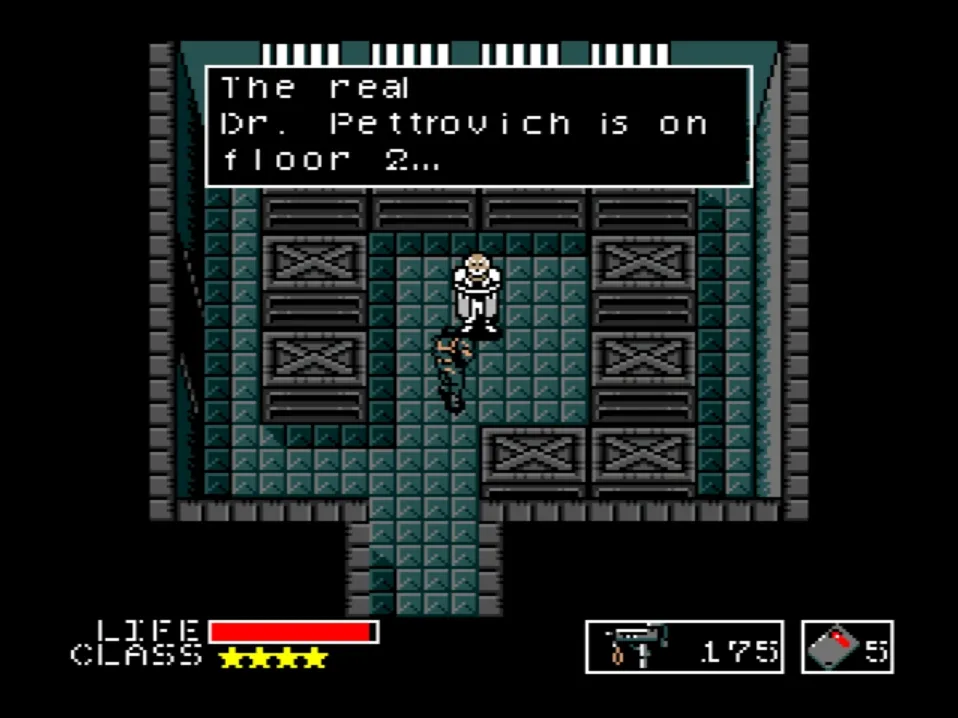 Where Metal Gear really differentiates itself from similar games of the era is in its narrative quirks. Although its story is not much more complex than The Legend of Zelda on the surface, with Solid Snake being placed at the front door of the Outer Heaven facility with a lone goal of destroying the titular nuclear war machine 'Metal Gear', the game has moments of keen awareness of how it can use its gameplay to both play with the player's emotions and build its world. One particular example is when you finally reach what you believe to be the prisoner cell of Dr. Madnar, the scientist responsible for the creation of the Metal Gear (under duress) only to be ambushed and suicide-killed by someone who is acting as a decoy. This is a mildly frustrating interaction, setting you back a good 5-10 minutes due to the game's limited checkpoint system but it powerfully paints the picture of the sheer depravity of an organisation that has someone who is willing to wait as a prisoner and then commit suicide in order to prevent you from stopping their plans.