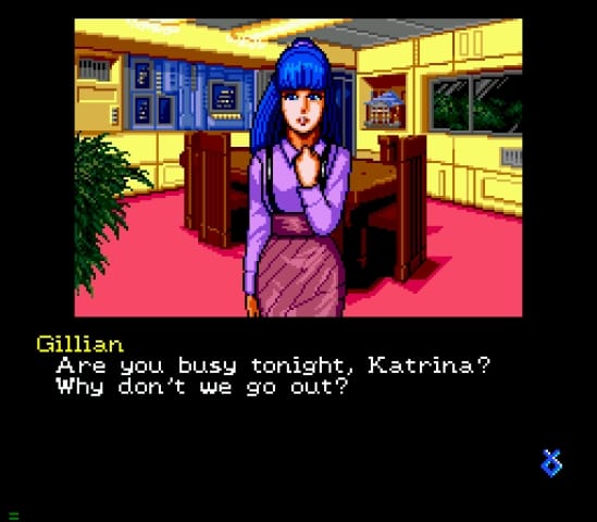 During the opening sequence of the game, where Gillian undergoes his orientation at Junker HQ, he is shown around by the secretary Mika. Upon seeing Mika, Gillian, whose only known character trait at this point is the fact he is married, begins oogling Mika. The game continues this by providing multiple different dialogue lines for the options of looking at and investigating Mika across the various rooms of Junker HQ as she shows Gillian around. These range from further insights into Gillian being a creep to Mika flirtatiously responding to the attention, while trying to keep Gillian at an arm's length (perhaps literally). However, much like that scene in Blade Runner, where through modern eyes it can feel intentionally disturbing, the game makes it very clear any push back from Mika is her simply playing hard to get as she asks Gillian for a dinner date towards the game's conclusion.